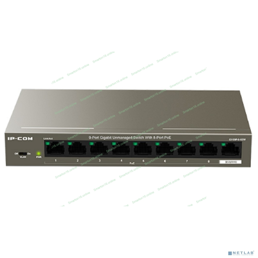 Коммутатор неуправляемый PoE IP-COM G1109P-8-102W 9 портов, 9x1 Гбит/с, PoE 8х92 Вт, настольный
