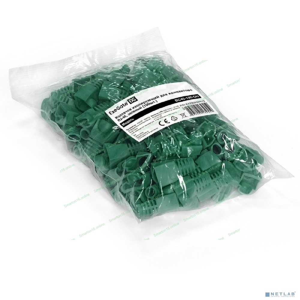 Колпачок ExeGate BC45-100-GN изолирующий для коннектора RJ-45, зеленый (100 шт)