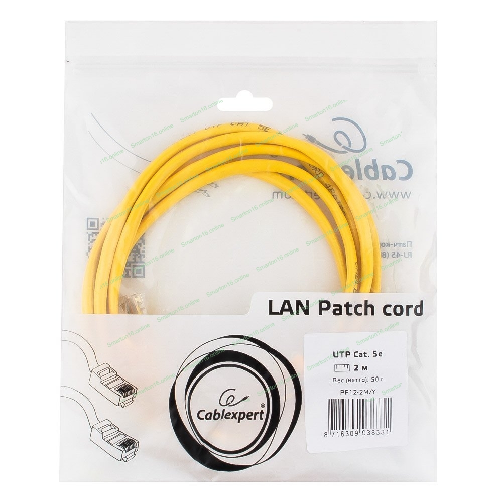 Патч-корд UTP Cablexpert cat.5e, 2м, литой, многожильный, желтый