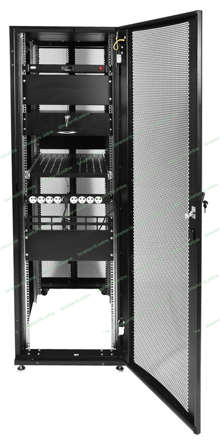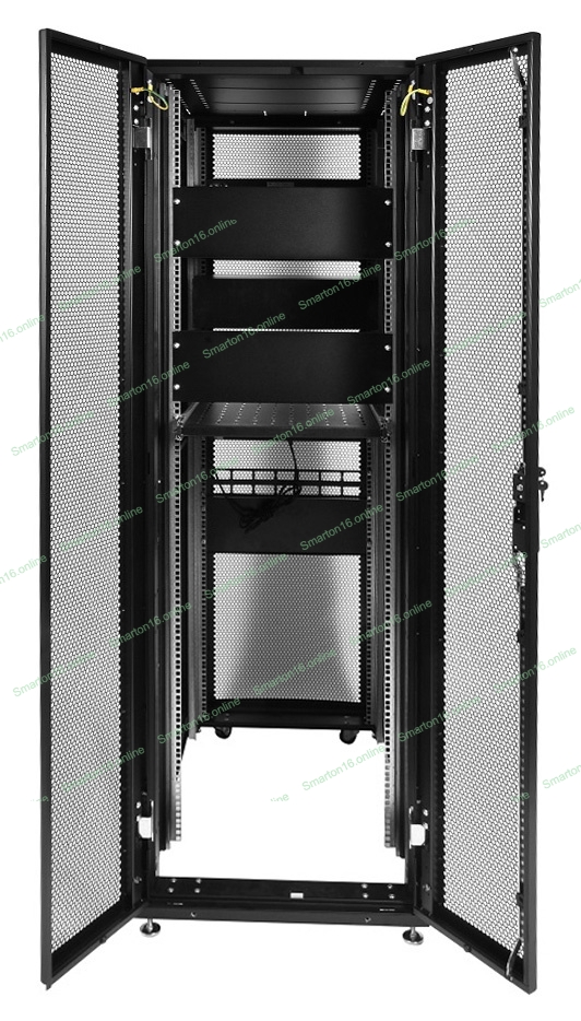 Шкаф серв.ПРОФ нап. 42U (600x1000) дверь перфор., задние двойные перфор., черный, в сборе (ШТК-СП-42.6.10-48АА-9005) (1 коробка)