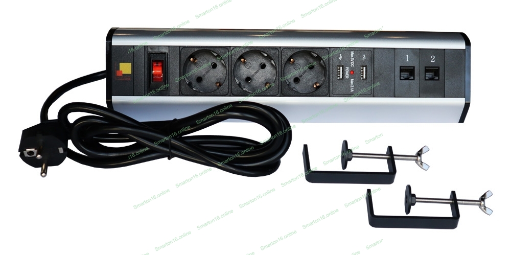Блок розеток: 3 эл. модуля, 2 USB модуля, 2 порта кат.6