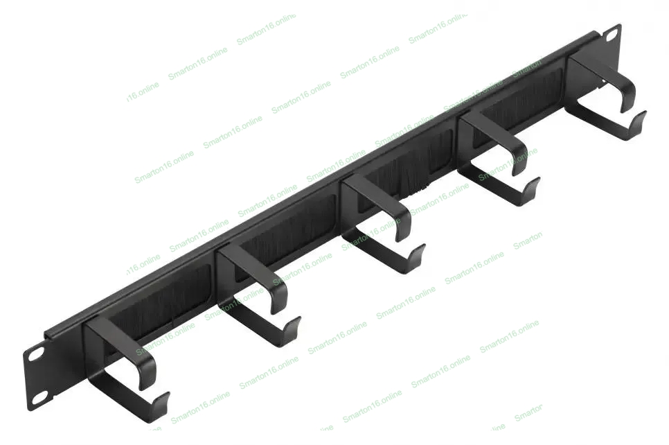 Кабельный органайзер 19" c щеточным вводом с 5 металлическими кольцами, 1U