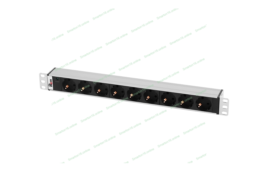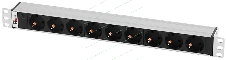 Блок розеток Rem-10 без шнура с инд., 9 Sсhuko, вход IEC 60320 C14, 10A, алюм., 19"