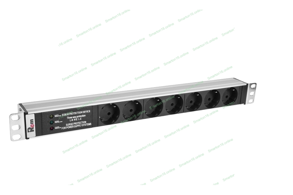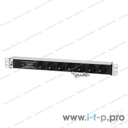Блок розеток Rem-10 без шнура с фил. и инд., 7 Schuko, вход IEC 60320 C14, 10A, алюм., 19" (R-10-7S-FI-440-Z)