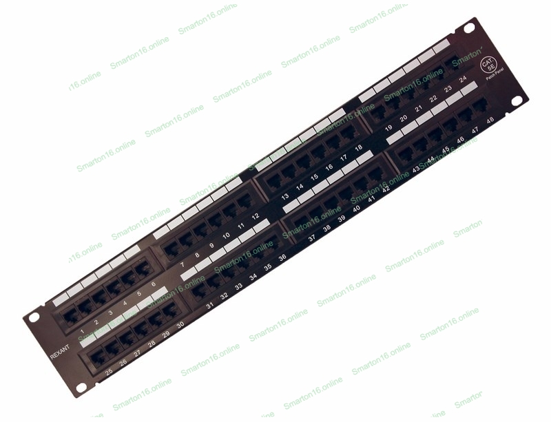 Патч-панель Rexant 19", 2U, 48 портов RJ-45, категория 5e, UTP неэкранированная, черная