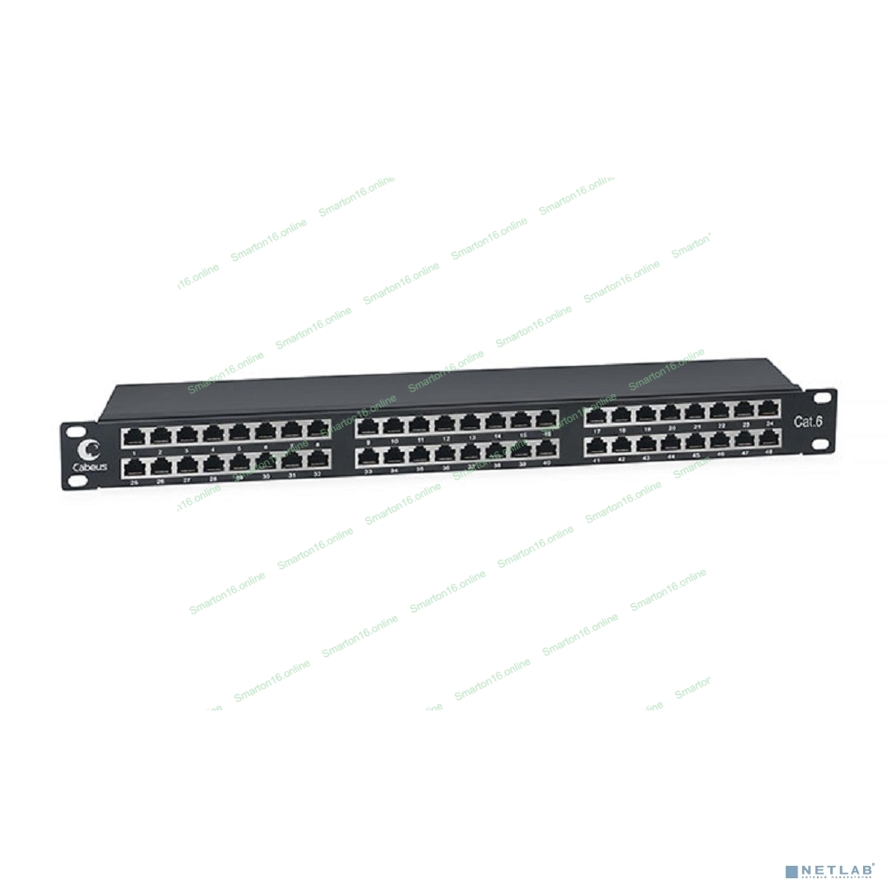 Комм. патч-панель Cabeus, 19", 1HU, портов: 48 х RJ45, кат. 6, экр., черный, (PLHD-48-Cat.6-SH-Dual IDC-1U)