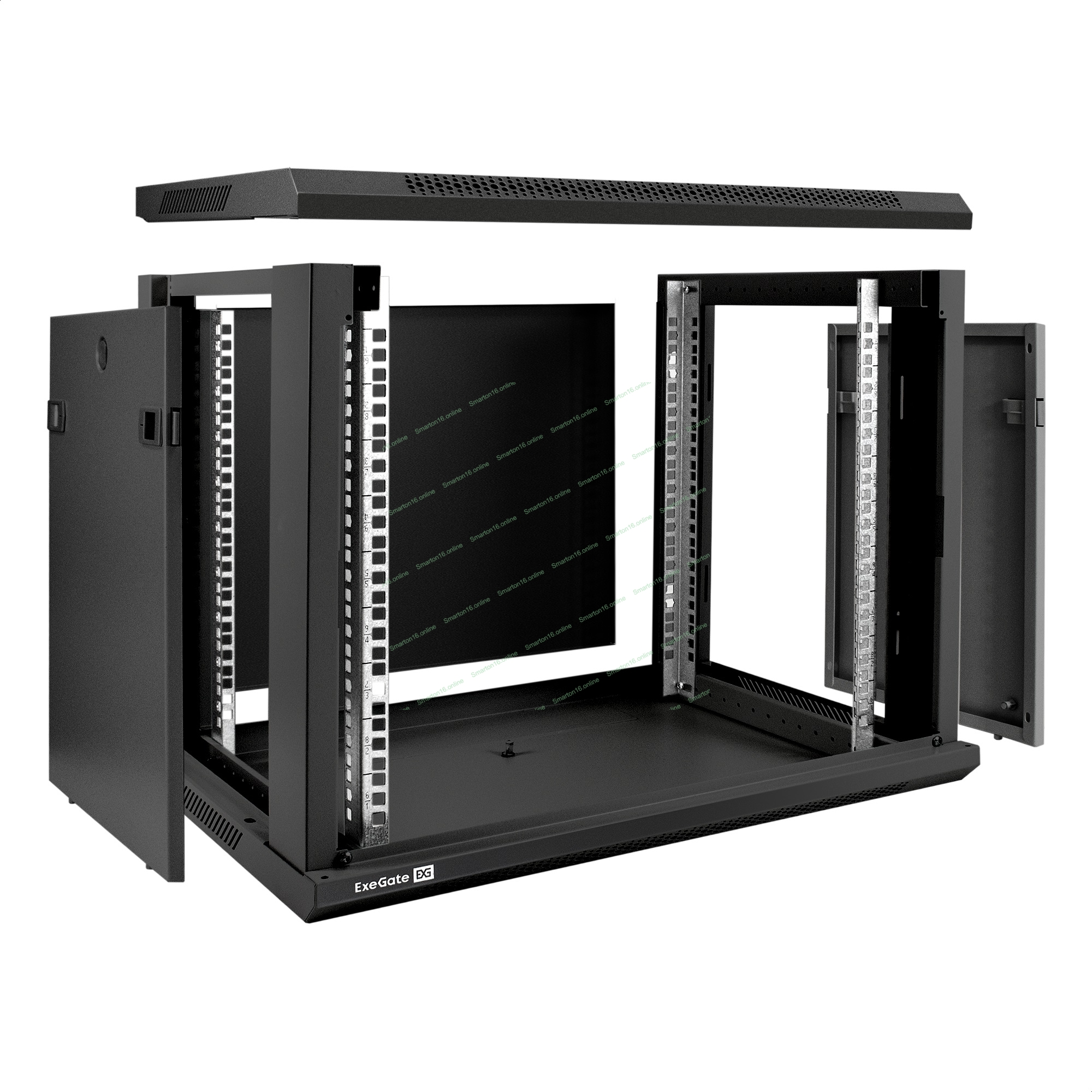 Шкаф телекоммуникационный 19" настенный 9U ExeGate EC-WM-9U.450.G.BLACK (19", 9U, 600x450x500 мм (ШхГхВ), передняя дверь закаленное стекло, съемные боковые панели, пыле- и влагозащита IP23, черный RAL 9004)