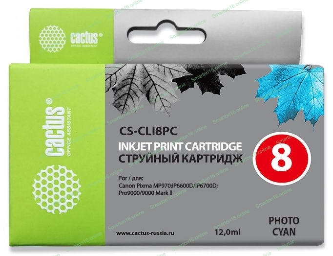 Картридж струйный Cactus CS-CLI8PC голубой (12 мл) для Canon Pixma iP6600/iP6600d/iP6700/iP6700d/MP960/MP970/PRO 9000