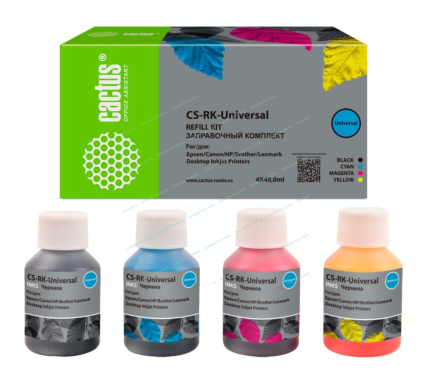 Заправочный набор Cactus CS-RK-Universal голубой/пурпурный/желтый/черный набор 4x40мл для HP/Lexmark/Canon