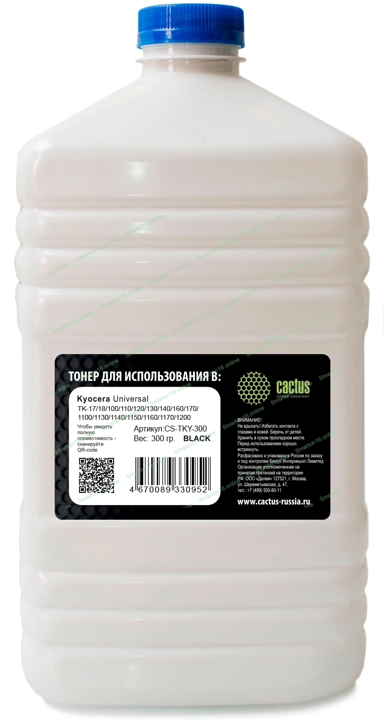 Тонер Cactus CS-TKY-300 черный флакон 300гр. для принтера Kyocera Universal TK-17/18/100/110/120/130/140/160/170/1100/1130/1140/1150/1160/1170/1200