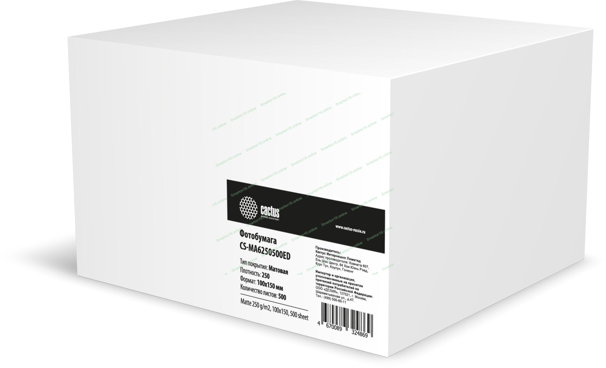 Фотобумага Cactus CS-MA6250500ED A6/250г/м2/500л./белый матовое/матовое для струйной печати