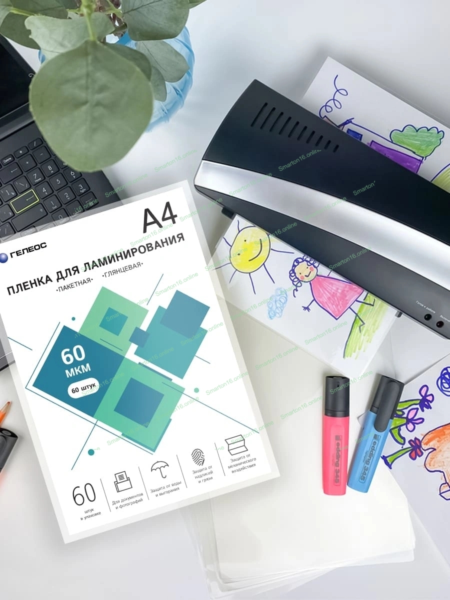 Пленка для ламинирования ГЕЛЕОС, А4, 60 мкм 60 шт./Пленка для ламинирования A4, 216х303 (60 мкм) глянцевая 60 шт