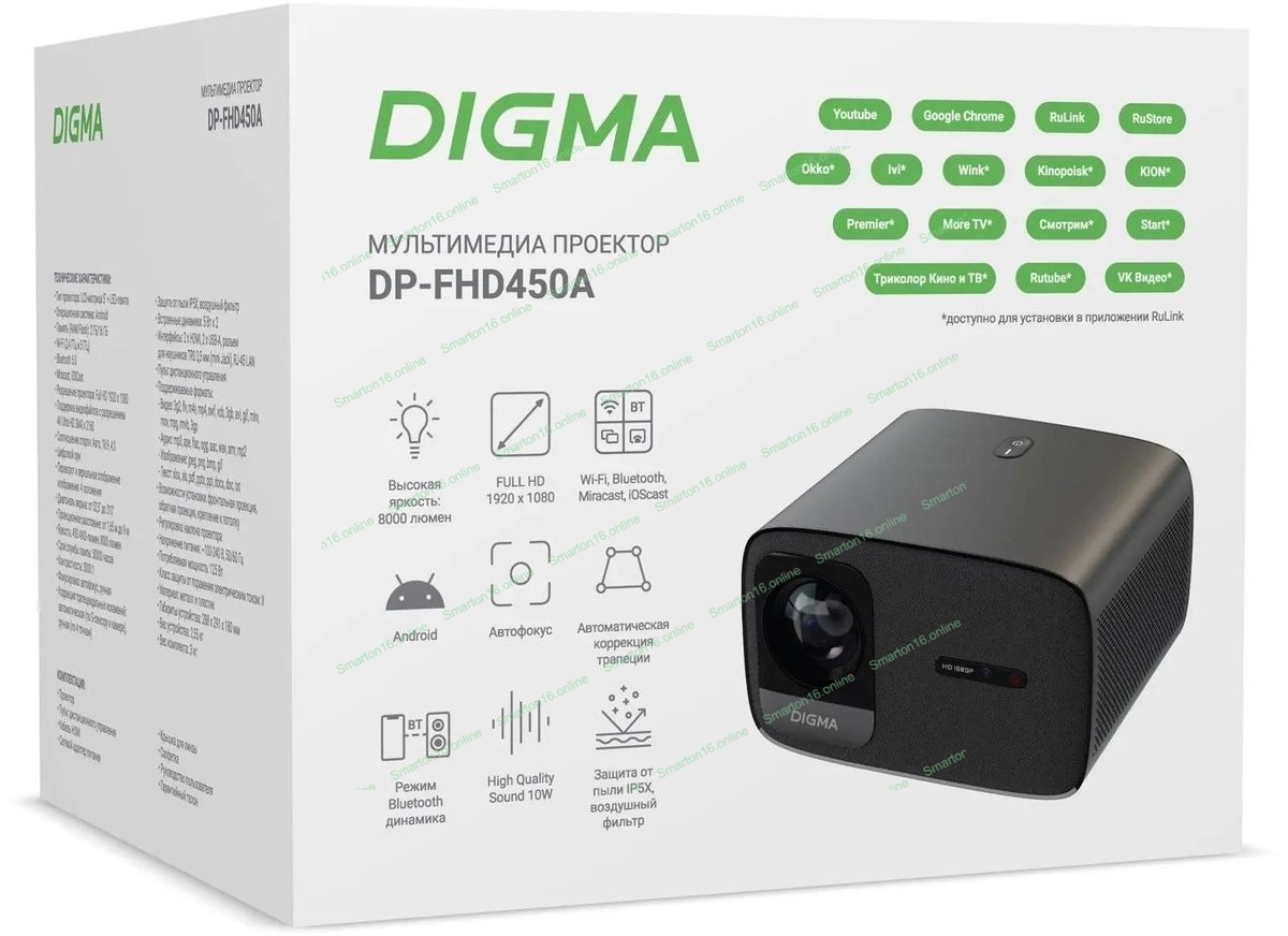 Проектор Digma DP-FHD450A LCD 8000Lm LS 600Lm ANSI (1920x1080) 3000:1 ресурс лампы:50000часов 2xUSB typeA 2xHDMI 3.2кг