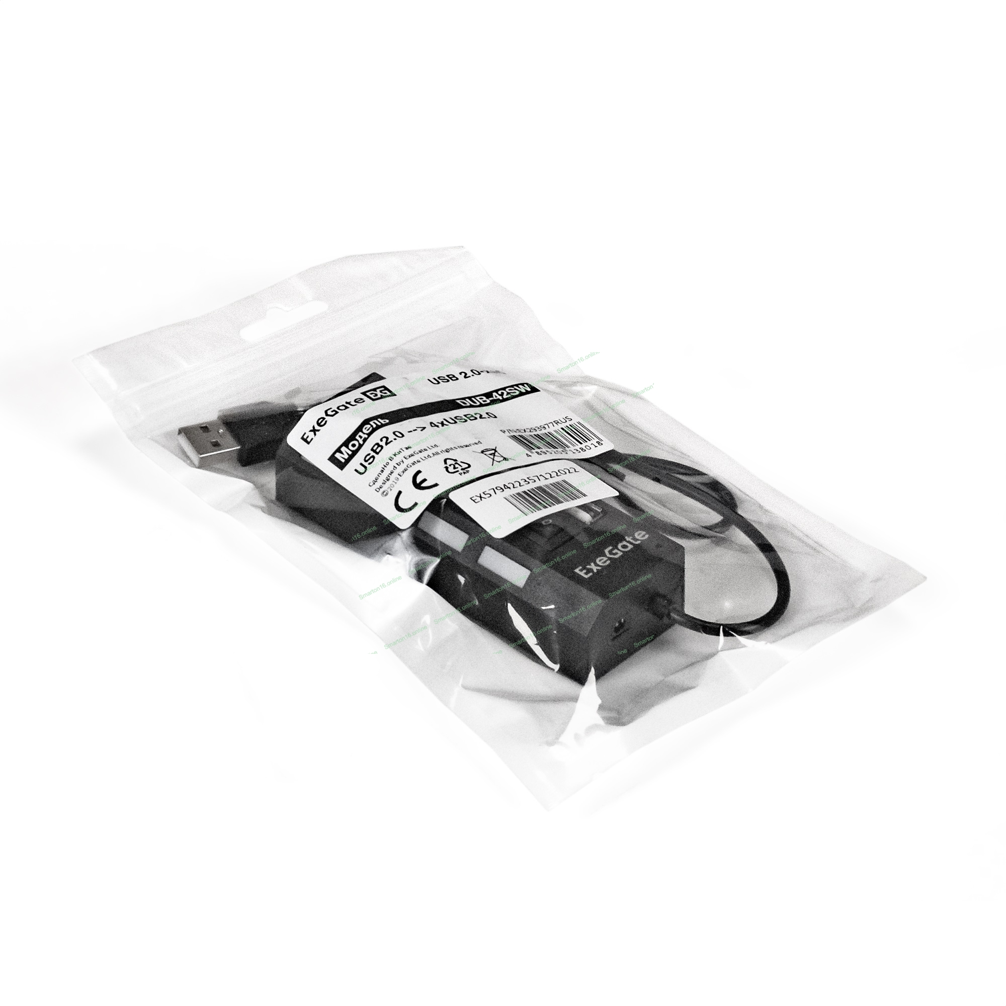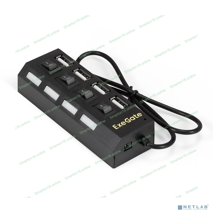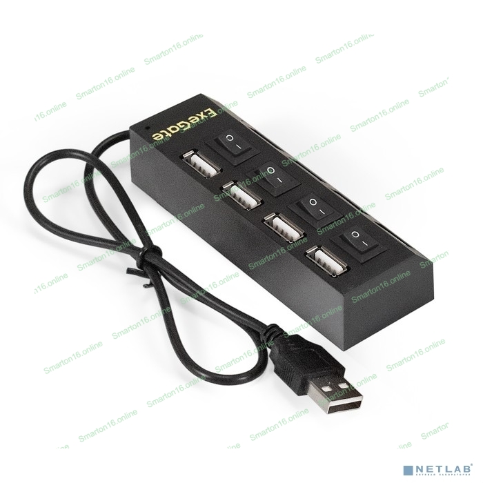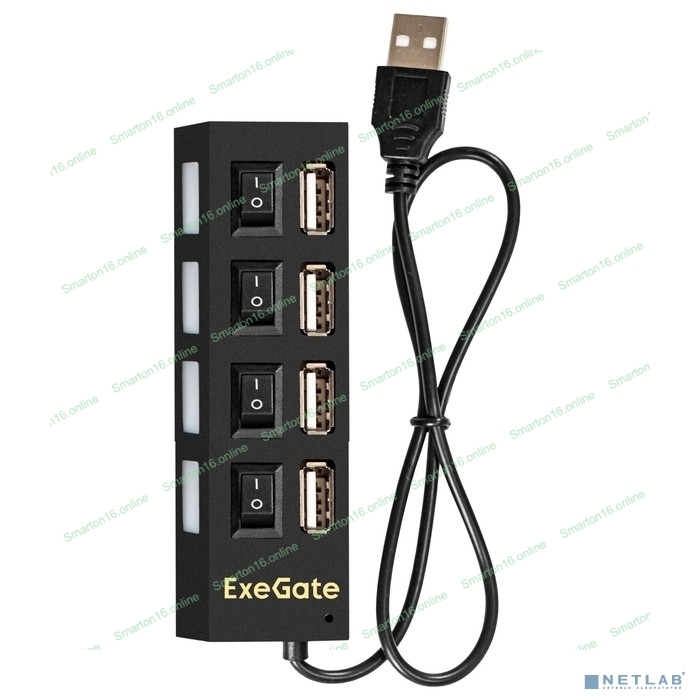USB-концентратор ExeGate EX293977RUS DUB-42SW (кабель-адаптер USB2.0 --> 4xUSB2.0, кнопки включения/отключения для каждого порта, Plug&Play, черный)
