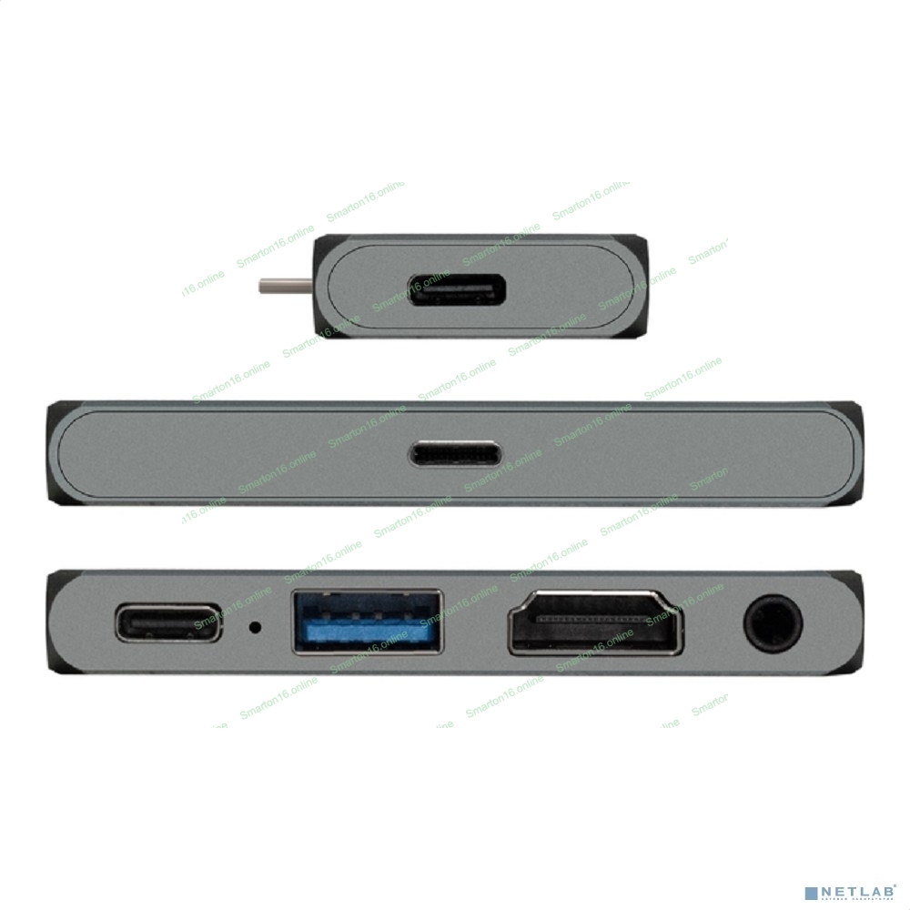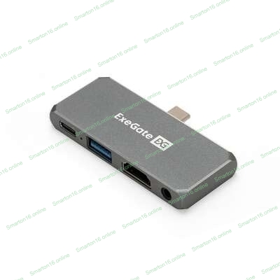 USB-концентратор 5-в-1 ExeGate DUB-31C/PD/HA (кабель-адаптер USB Type-C --> 1xUSB3.0 + Type-C DATA (480Mb/s) + PD 100W + HDMI 4K@30Hz + Audio, Plug&Play, подходит для iPad Pro и мобильных телефонов, серый)