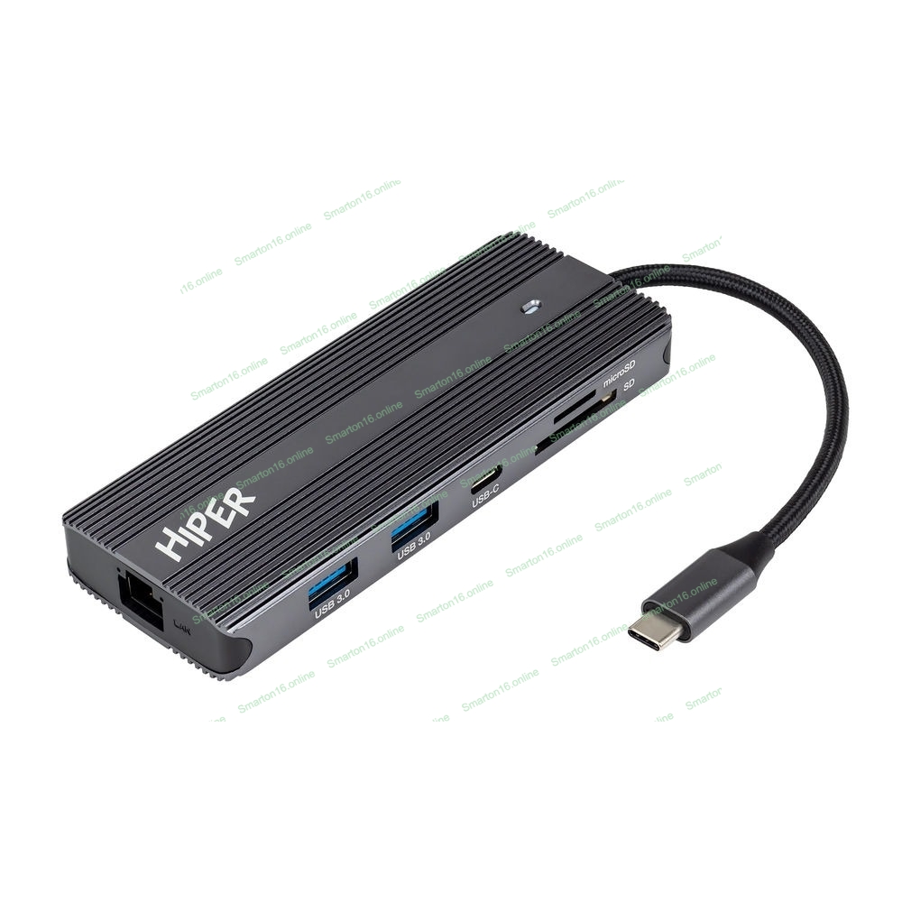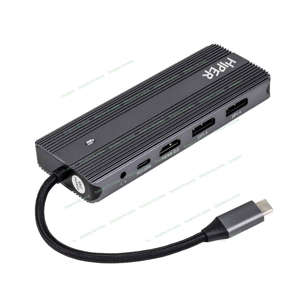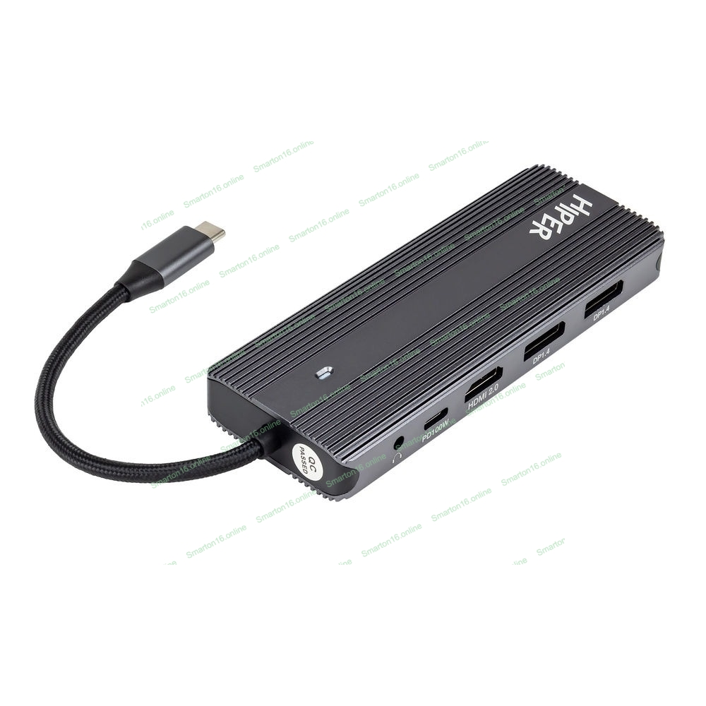 USB-концентратор HIPER Docking station USB-C HUB 11in1 (1*USB-C 100W PD, 1*HDMI 4K@60Hz, 2*DP 4K@60Hz, 2*USB-A 3.0 (5Gbps data), 1*USB-C 3.0 (5Gbps data), 1*microSD, 1*SD, 1*3.5мм audio, 1*RJ45 GB)