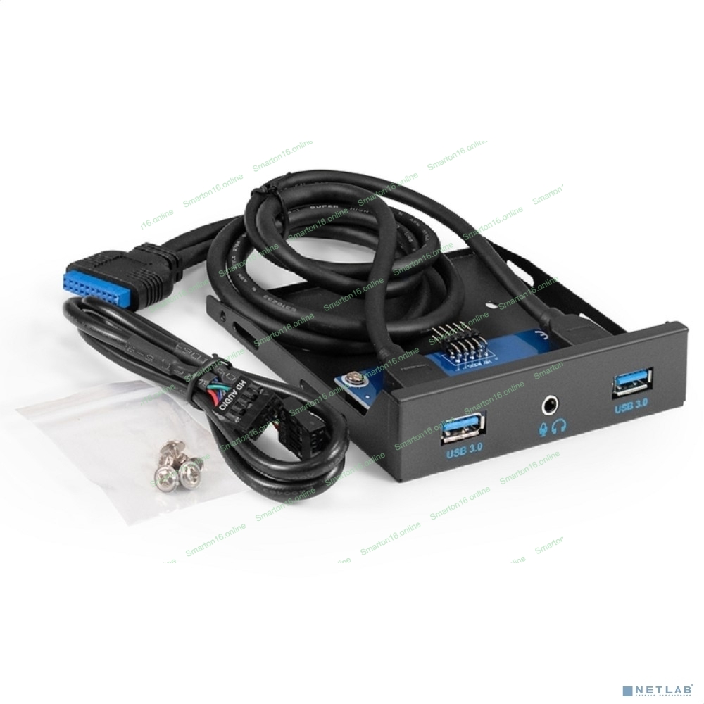 Планка USB на переднюю панель ExeGate U3H-627S, 3,5", 2хUSB3.0+HD Audio Combo, черная, металл, подсоед. к MB