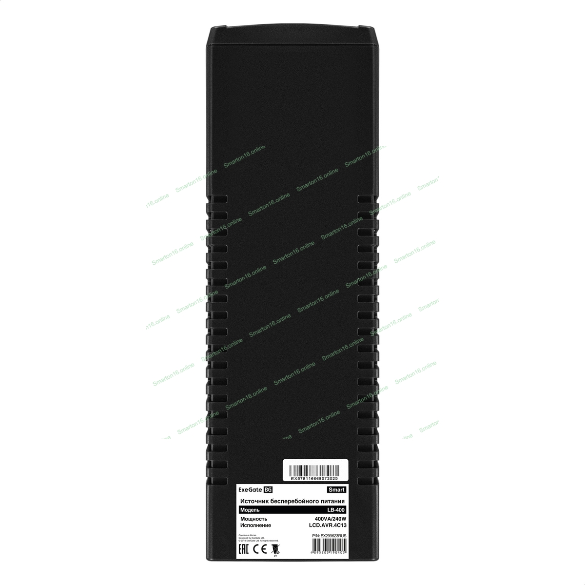 Источник бесперебойного питания ExeGate Smart LB-400.LCD.AVR.4C13 (400VA/240W, LCD, AVR, 4*C13, батарея 12V 4.5Ah, Black)