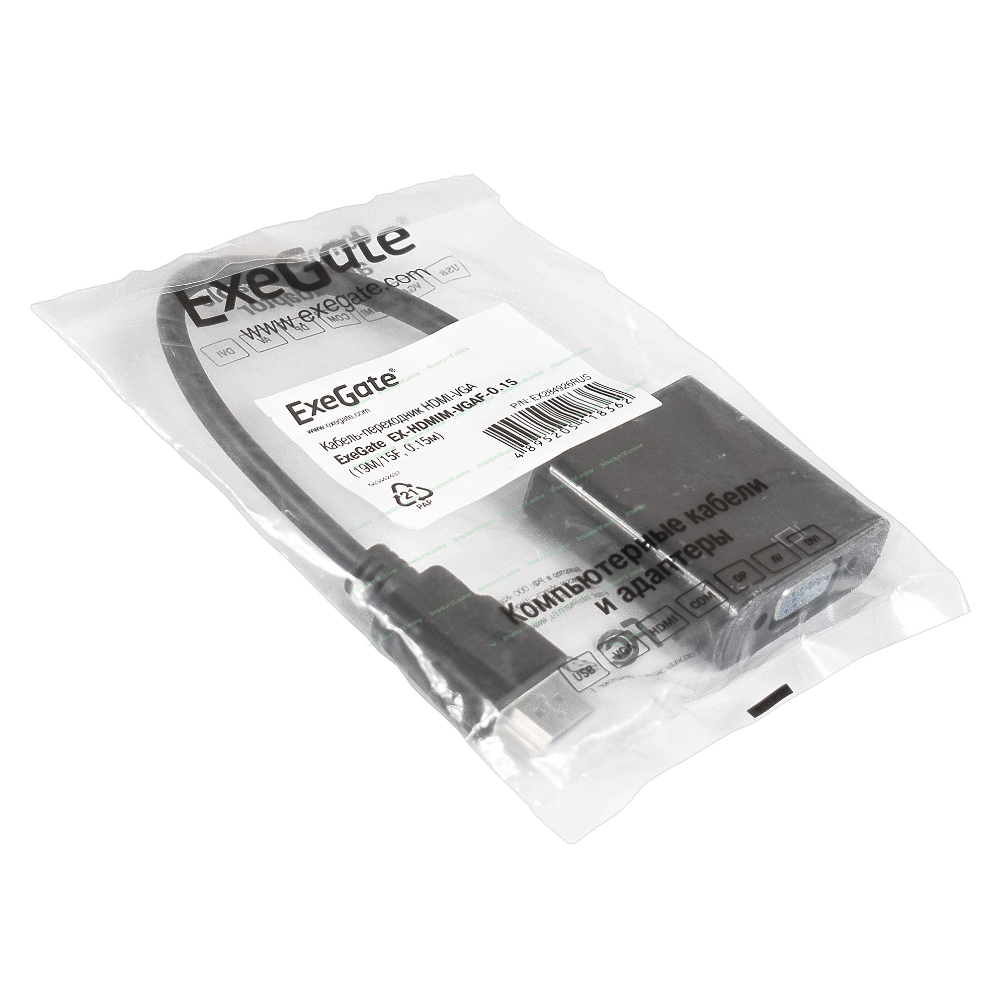 Кабель-переходник ExeGate EX284926RUS HDMI-VGA ExeGate EX-HDMIM-VGAF-0.15 (19M/15F, 0,15м)