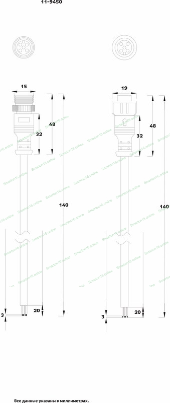 Соединительный кабель Rexant (5pin) герметичный (IP67) 5х0.5мм² белый