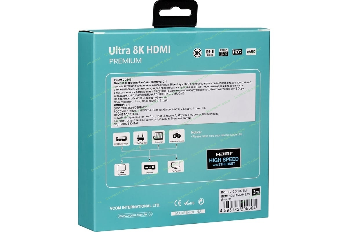 Кабель VCOM CG865-3M HDMI 19M/M,ver. 2.1, 8K@60 Hz 3 м VCOM CG865-3M