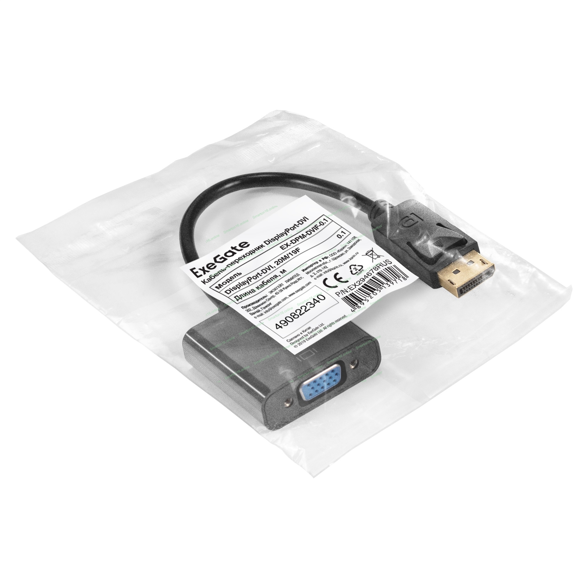 Кабель-переходник DisplayPort-VGA ExeGate EX-DPM-VGAF-0.2 (20M/15F, 0,2м)