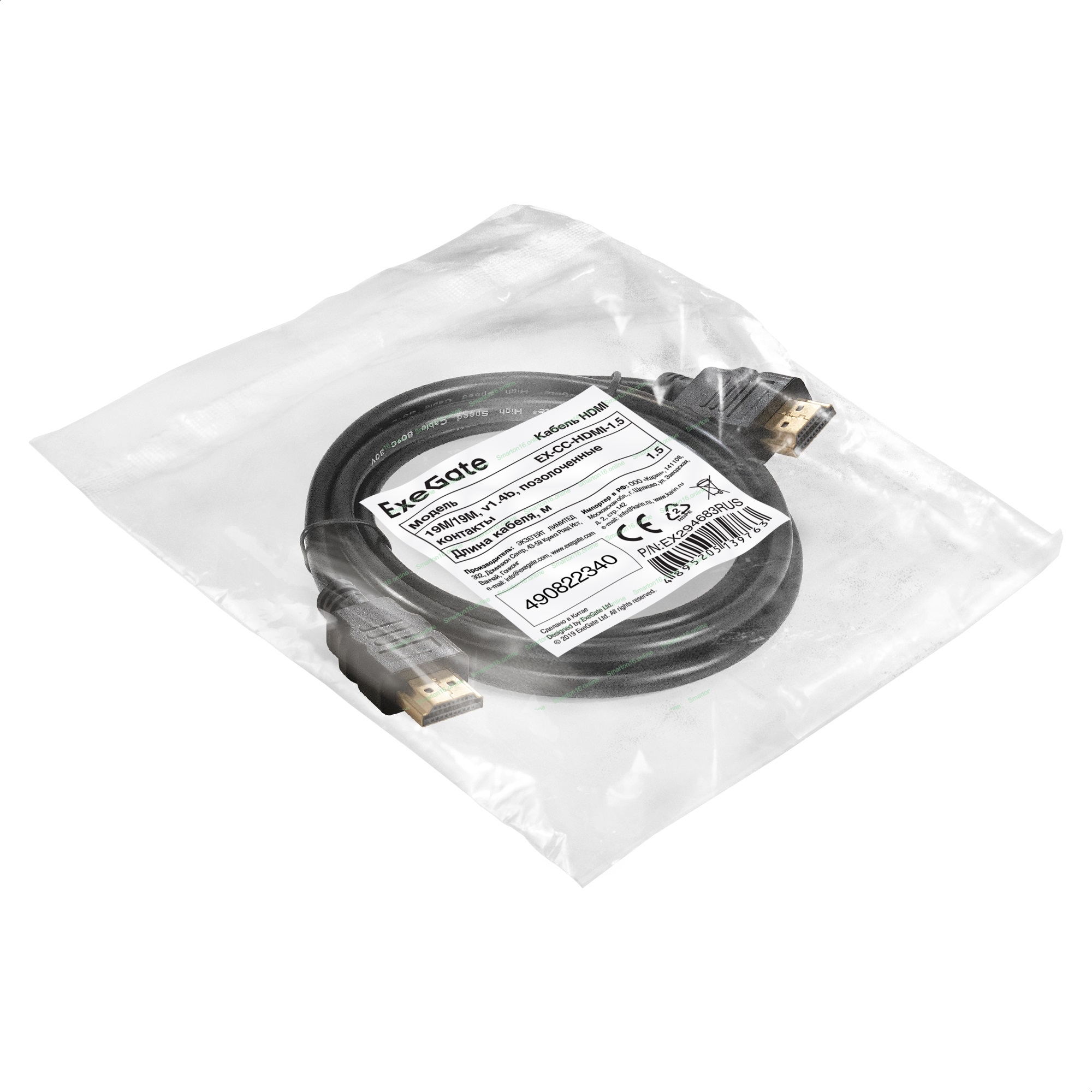 Кабель HDMI ExeGate EX-CC-HDMI-1.5 (19M/19M, 1,5м, v1.4b, позолоченные контакты)