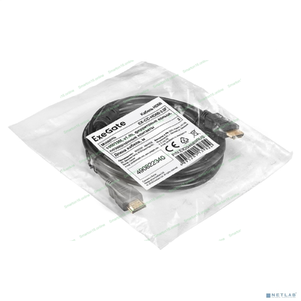 Кабель HDMI ExeGate EX-CC-HDMI-2.0F (19M/19M, 2м, v1.4b, ферритовые кольца, позолоченные контакты)
