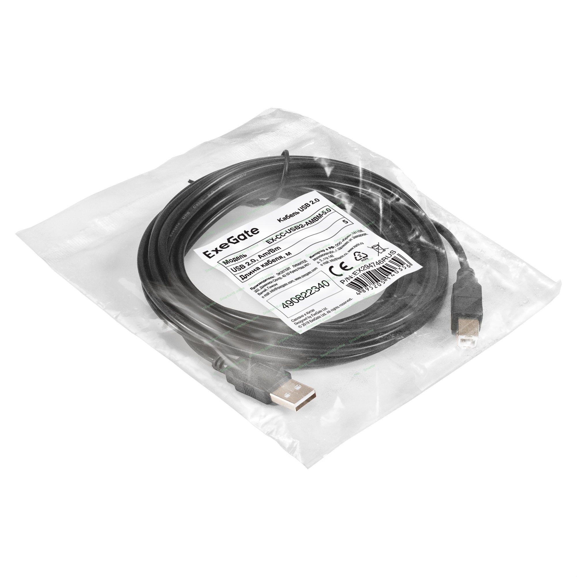 Кабель USB 2.0 ExeGate EX-CC-USB2-AMBM-5.0 (Am/Bm, 5м)
