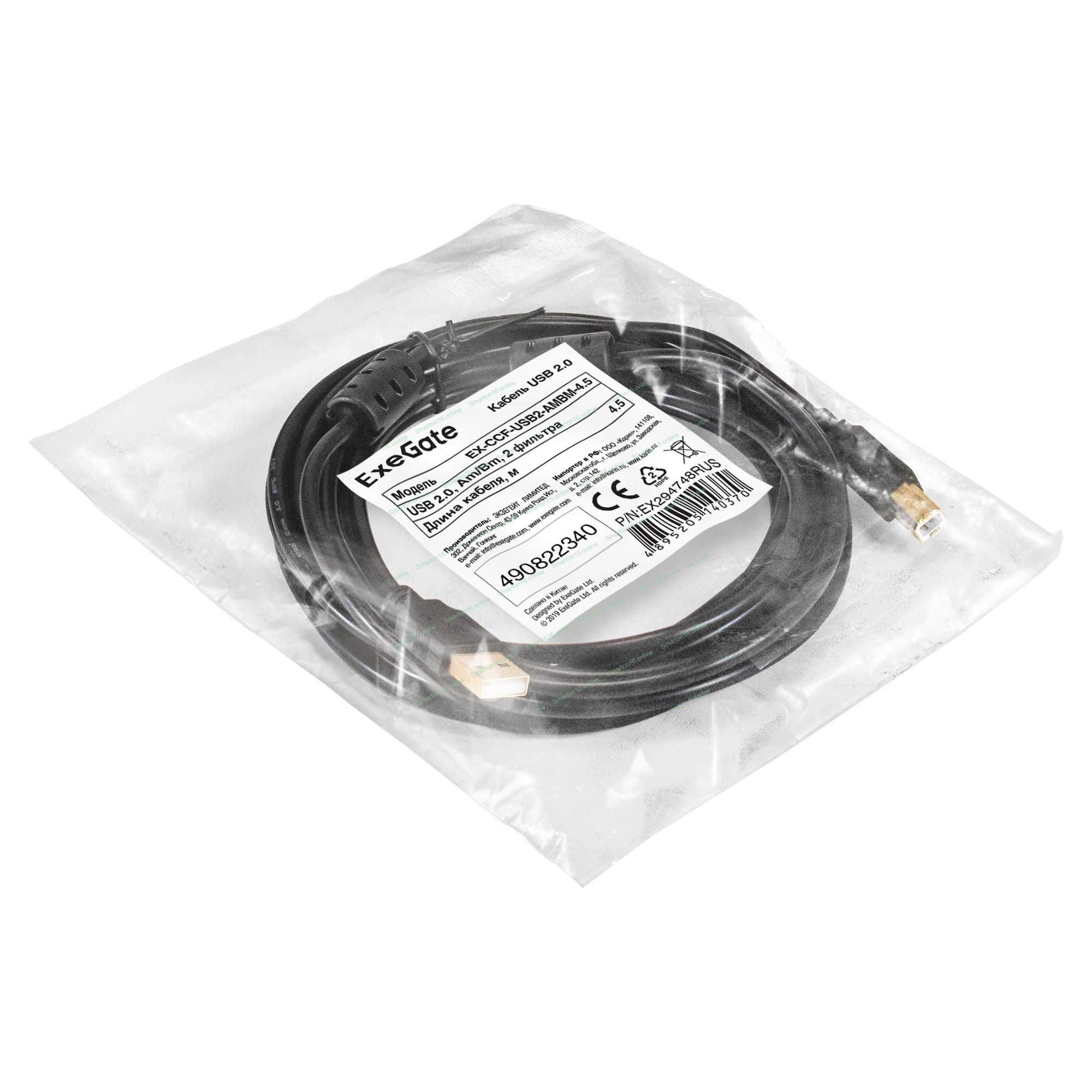Кабель USB 2.0 ExeGate EX-CCF-USB2-AMBM-4.5 (Am/Bm, 4,5м, 2 фильтра)