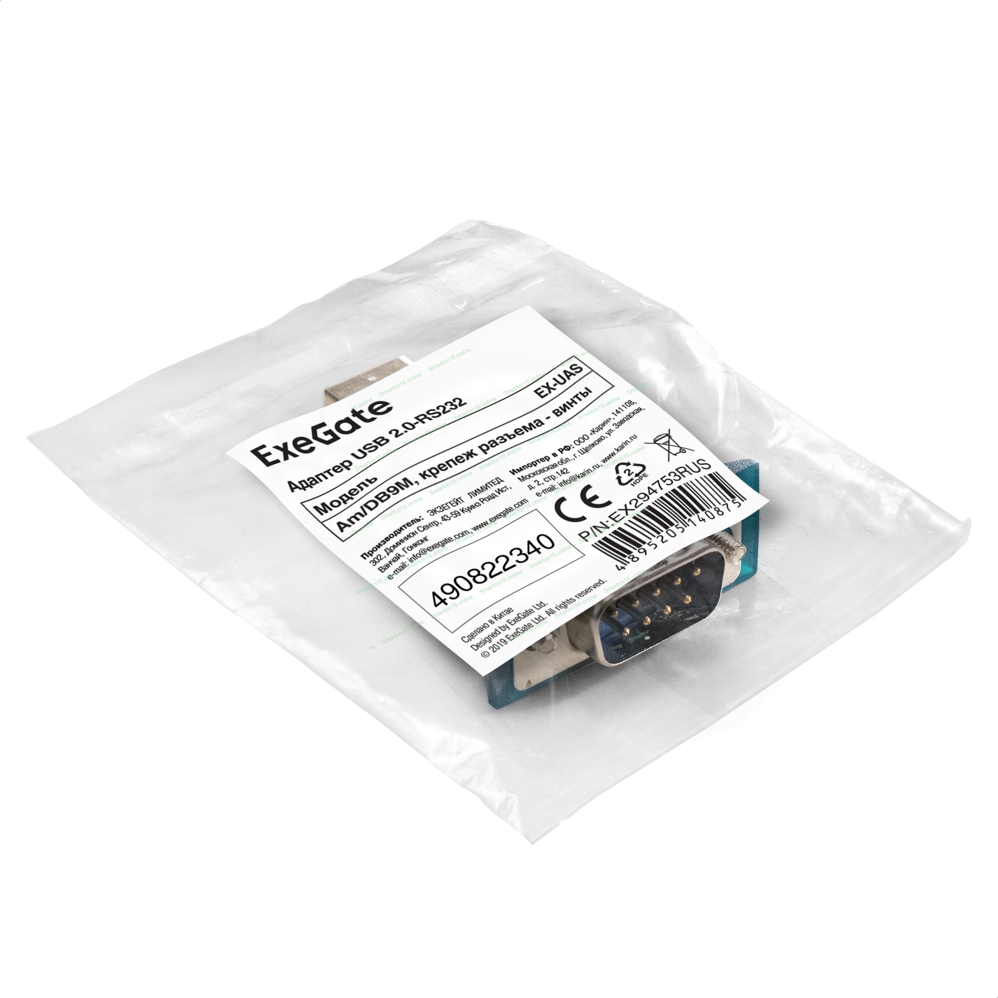 Адаптер USB 2.0-RS232 ExeGate EX-UAS (Am/DB9M, крепеж разъема - винты)