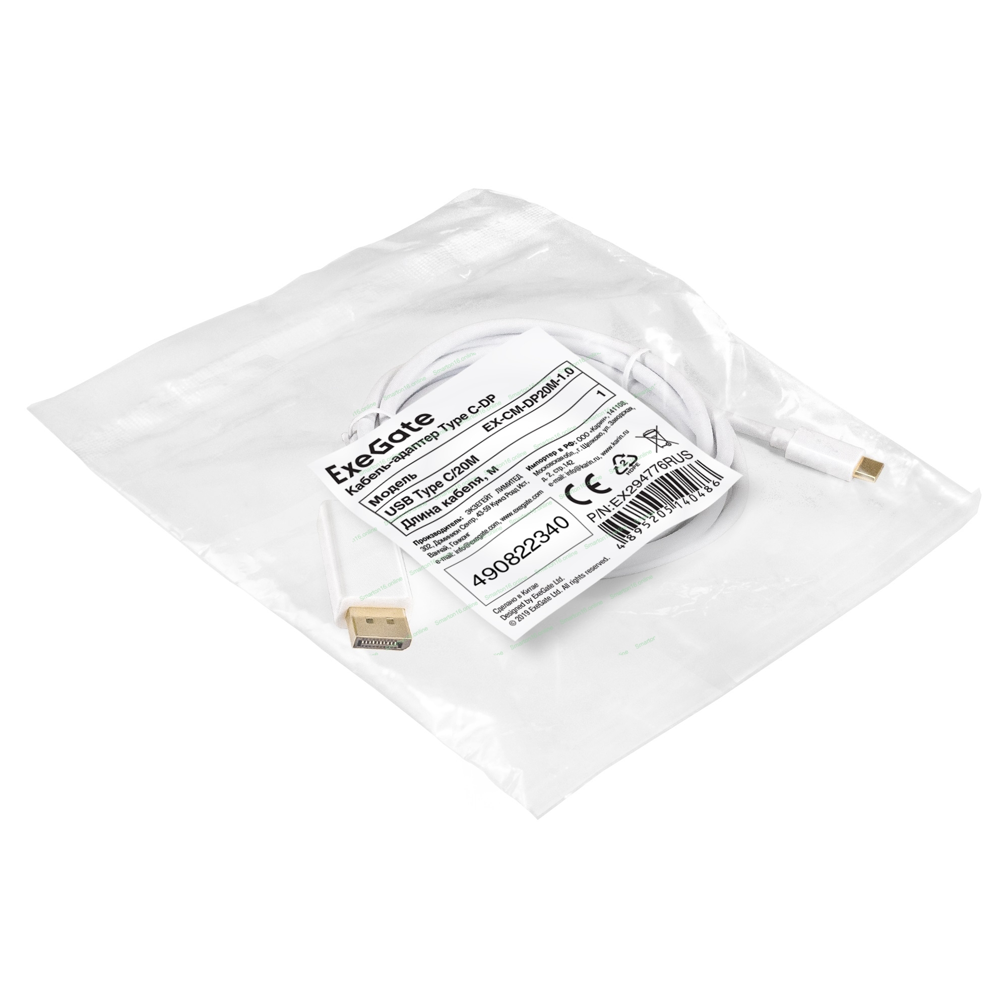 Кабель-адаптер Type-C-DP ExeGate EX-CM-DP20M-1.0 (USB Type-C/20M, 1,0м)