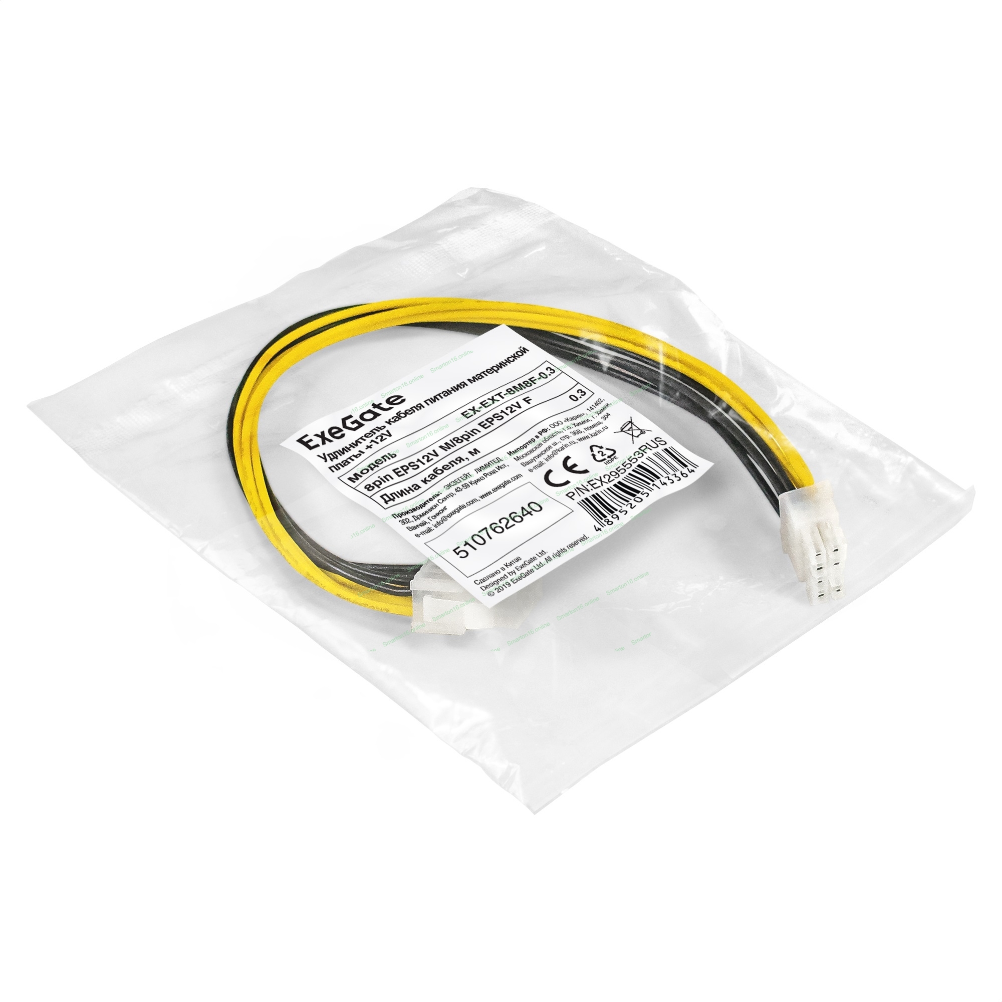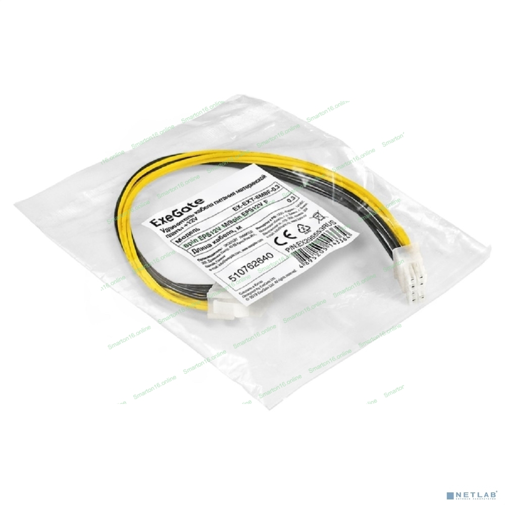 Удлинитель кабеля питания материнской платы +12V ExeGate EX-EXT-8M8F-0.3 (8pin EPS12V M/8pin EPS12V F, 0,3м)