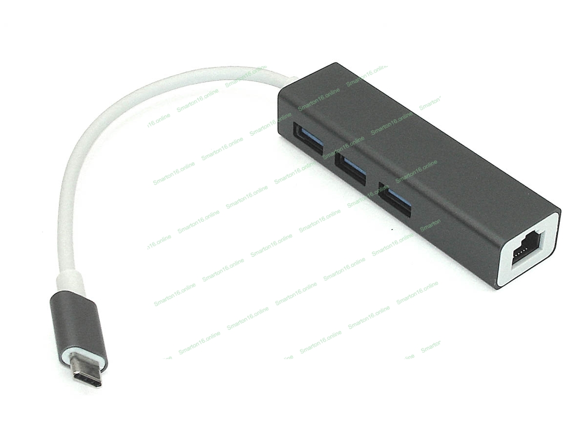 Адаптер Type-C на USB 3.0*3 + RJ45, серый