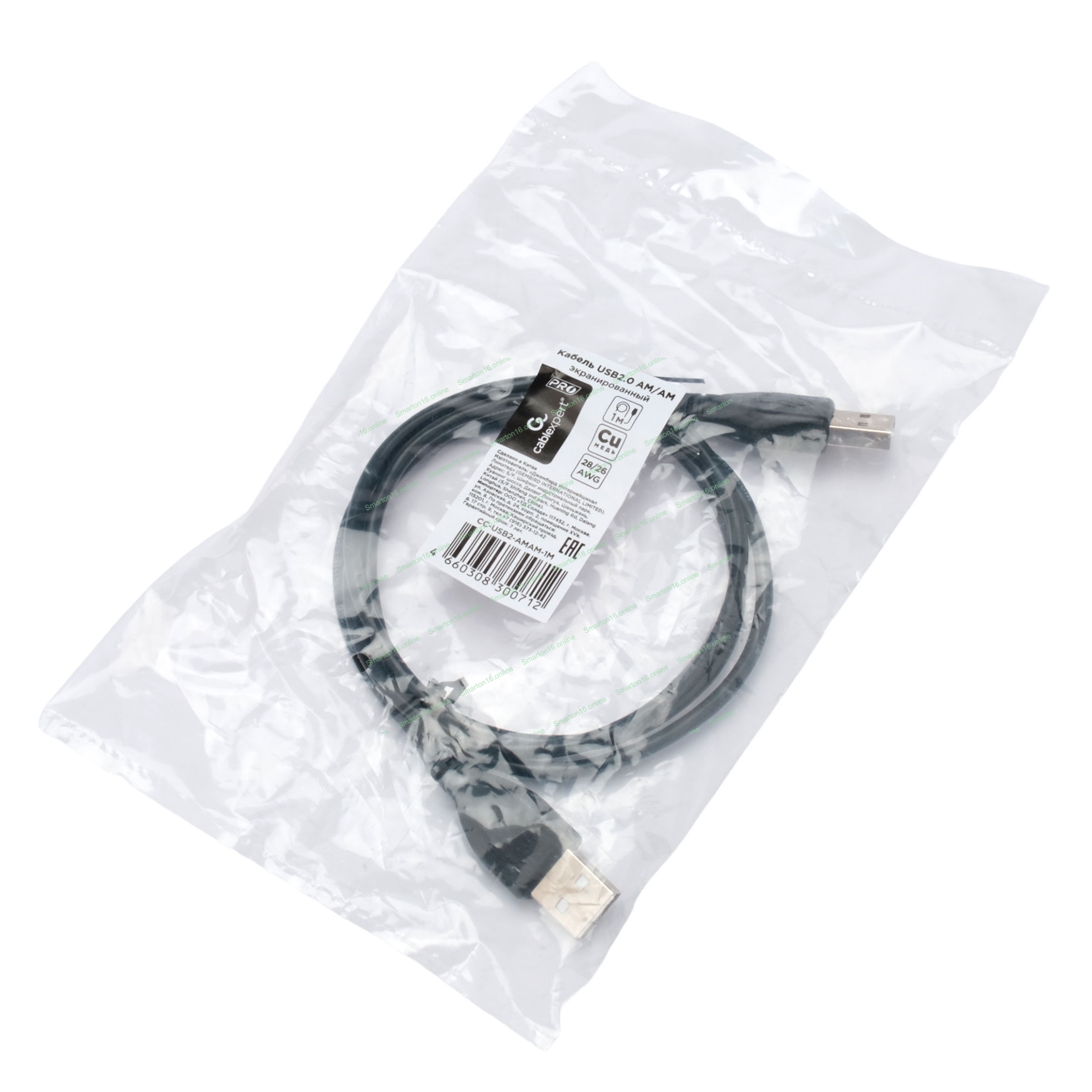 Кабель USB2.0 Cablexpert CC-USB2-AMAM-1M, AM/AM, экран, 28/26AWG, медь, Pro, 1м, черный, пакет