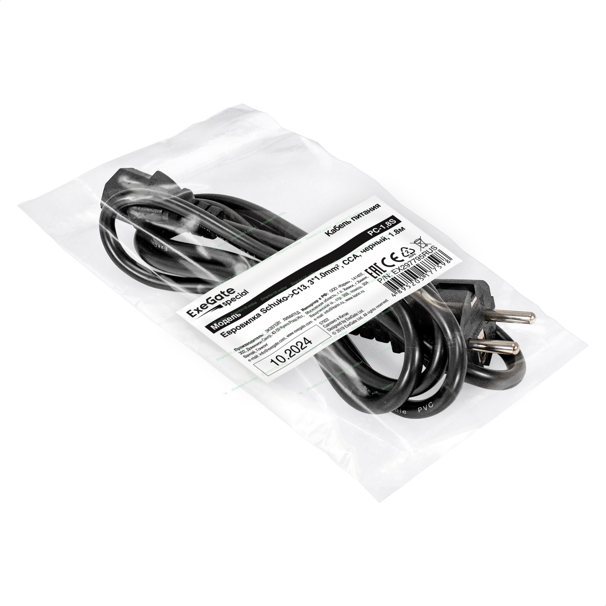 Кабель питания ExeGate Special PC-1,8S (Евровилка Schuko->C13, 3*1.0мм2, CCA, черный, 1.8 м)