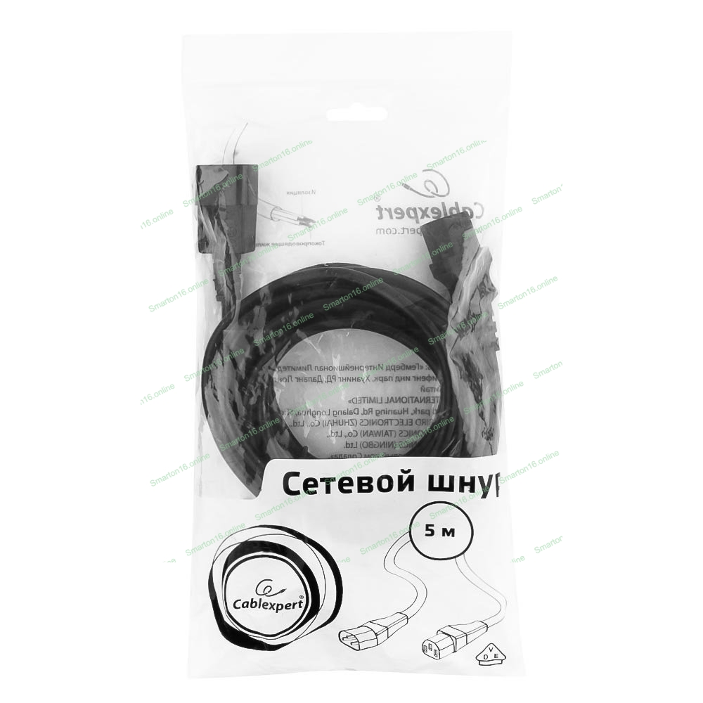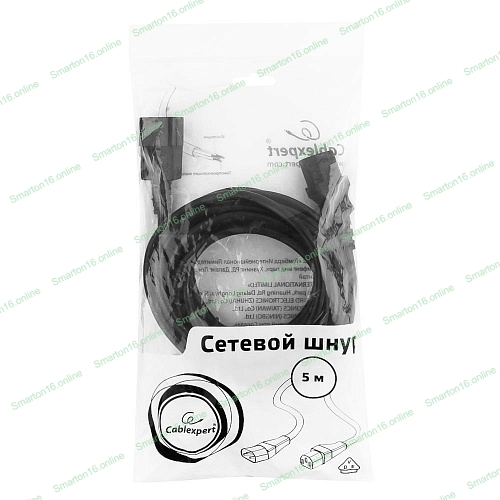 Кабель питания сист.блок-монитор Cablexpert PC-189-VDE-5M, 5м, C13-C14, VDE, 10А, Сечение провода: 0,75 мм2, черный, с заземлением