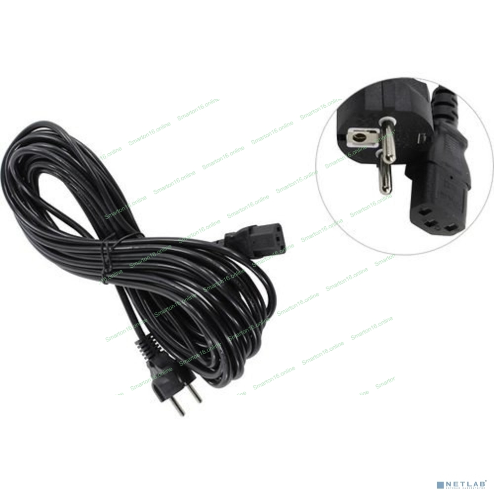 Кабель питания ExeGate Power PC-10P (Евровилка Schuko->С13) VDE-250V-3*0.75-CU, 10A, черный, 10м
