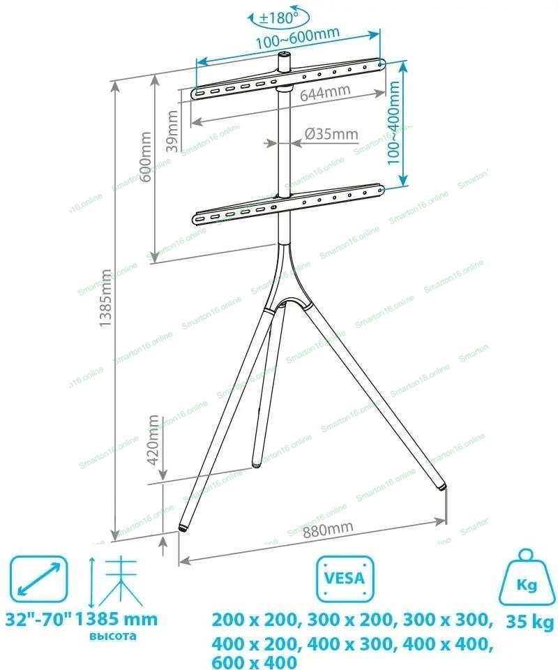 Кронштейн Kromax OMEGA-11 черный/деревянный, 3 шт/уп, Стойка-тренога, для 1 TV 32"-70", max вес 35 кг, пов. ±180°, высота 1385 мм, max VESA 600x400 мм