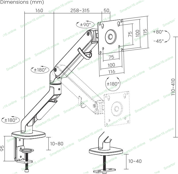 Кронштейн для мониторов Ultramounts UM734BL серый/черный 17"-27" макс.7кг крепление к столешнице поворот и наклон
