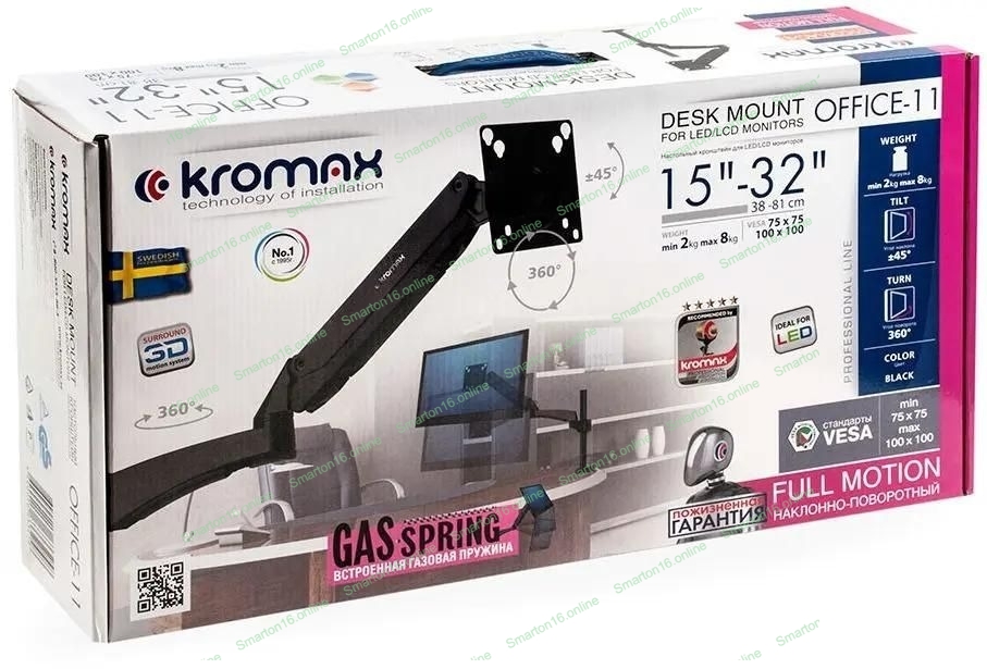 Кронштейн для мониторов ЖК Kromax OFFICE-11 черный 15"-32" макс.10кг настольный поворот и наклон