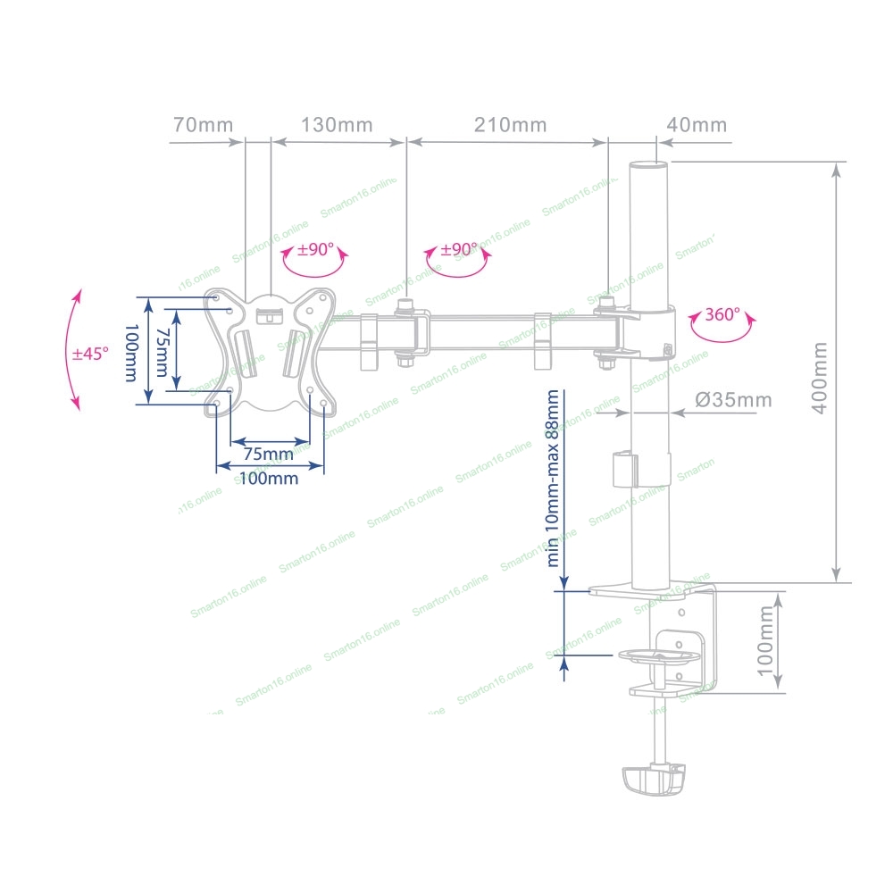 Кронштейн для мониторов Arm Media LCD-T11 черный 15"-32" макс.12кг настольный поворот и наклон верт.перемещ.