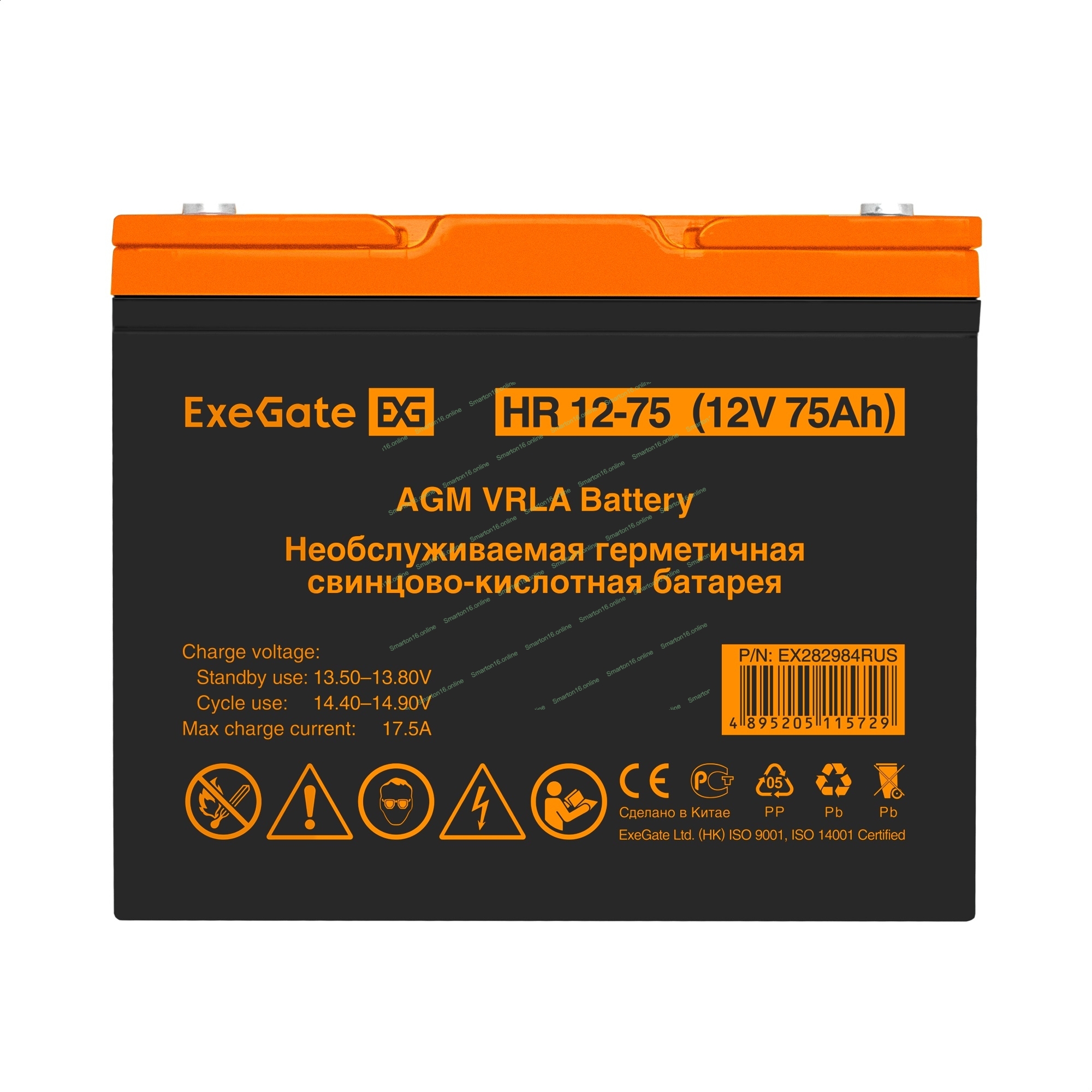 Аккумуляторная батарея ExeGate EX282984RUS HR 12-75 (12V 75Ah, под болт М6)