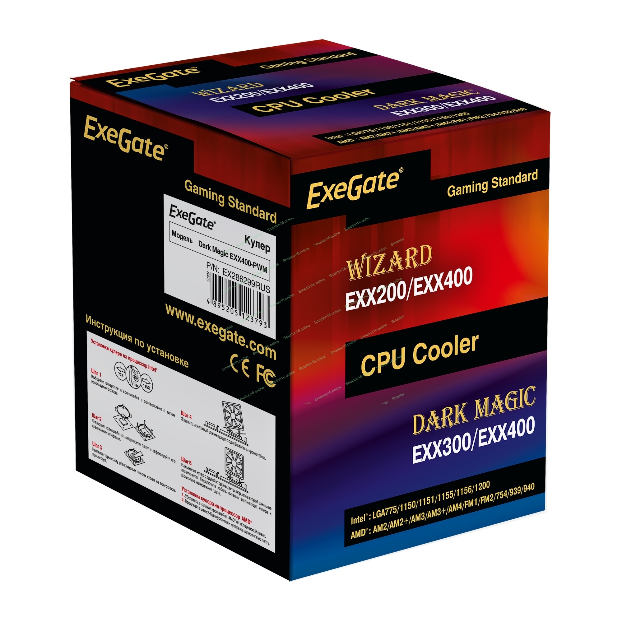 Кулер для процессора ExeGate Dark Magic EXX400-PWM серебристый, 120 мм, алюминий/медь, 2100 об/мин, 24 дБ, 4 pin, 140 Вт, 155 мм