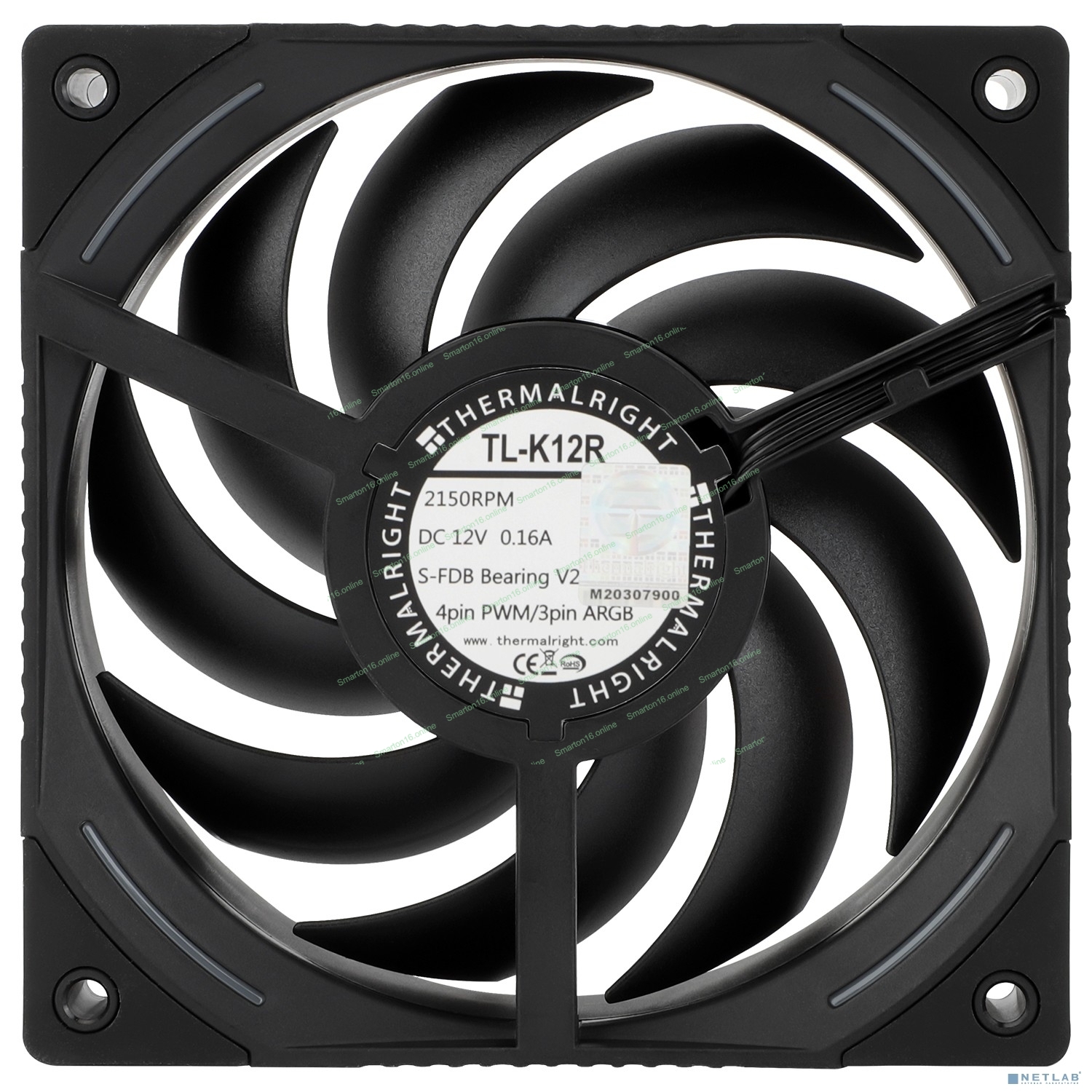 Кулер для корпуса Thermalright TL-K12R Reverse (120x120x25mm, 4-pin PWM, ARGB, 69CFM, 27dBA, 2150RPM, черный)