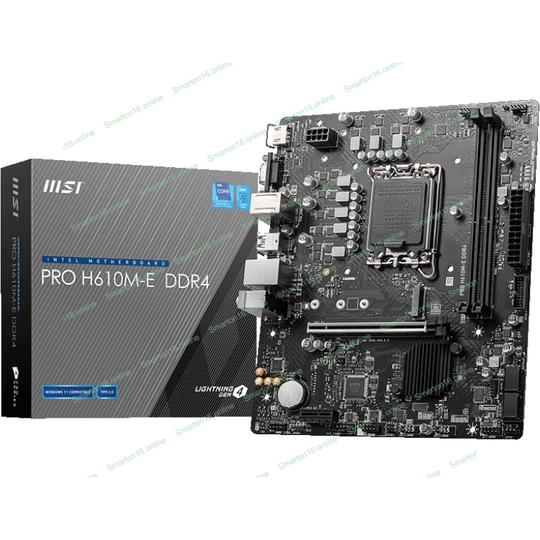 Материнская плата MSI PRO H610M-E DDR4, LGA 1700, Intel H610, 2xDDR4, 4xSATA, 1xM.2, 1xPCIe 4.0 x16, 1xPCIe 4.0 x1, 1xHDMI, 1xVGA, 1xRJ45 1Gb, 2xUSB-A 3.2 Gen 1, 4xUSB-A 2.0, 3x3.5мм, 7.1, mATX