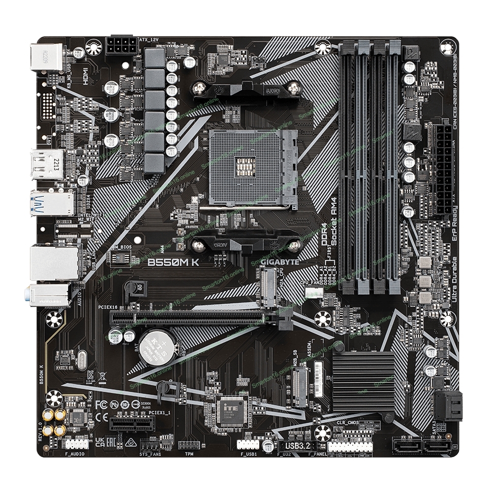 Материнская плата Gigabyte B550M K, AM4, AMD B550, 4xDDR4, 4xSATA, 2xM.2, 1xPCIe 4.0 x16, 1xPCIe x1, 1xHDMI, 1xDP, 1x 1Gb LAN, 4xUSB-A 3.2 Gen 1, 4xUSB-A 2.0, 3x3.5 мм, 7.1, mATX