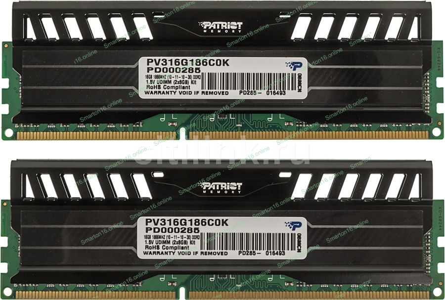 Оперативная память Patriot Viper 3, DDR3, 16GB (2x8 GB), 1866 MHz, CL10, DIMM, радиатор, черный