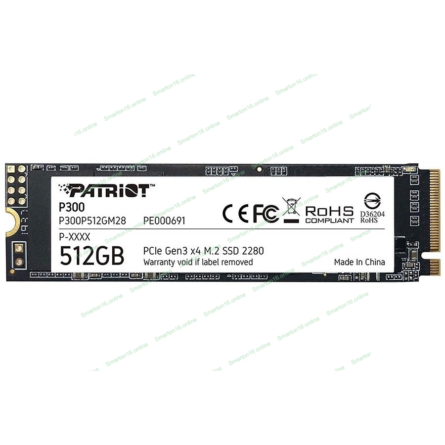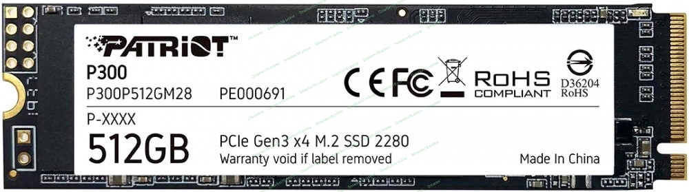 Накопитель SSD Patriot P300, 512Gb, PCIe 3.0 x4, M.2 2280, NVMe, R/W 1700/1200