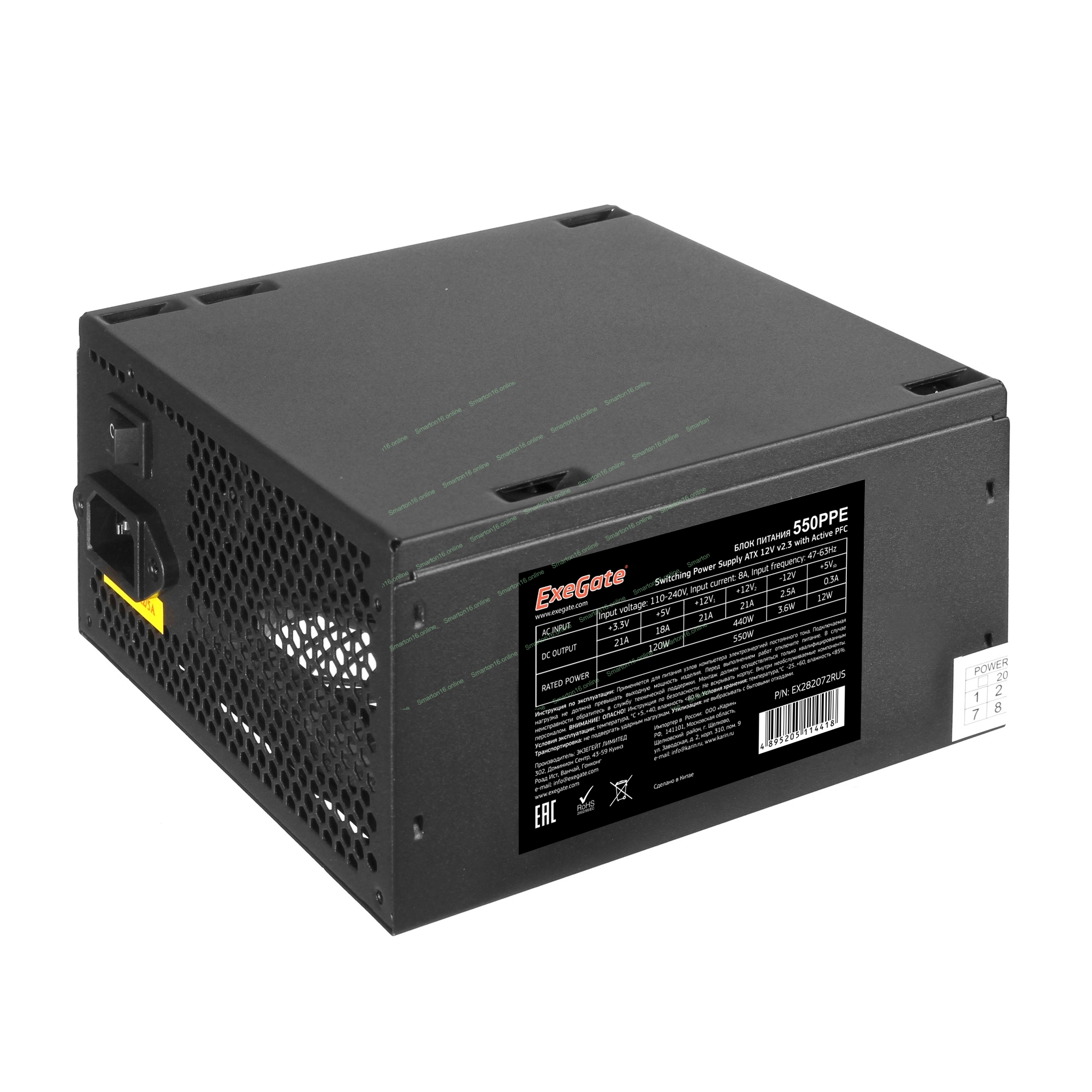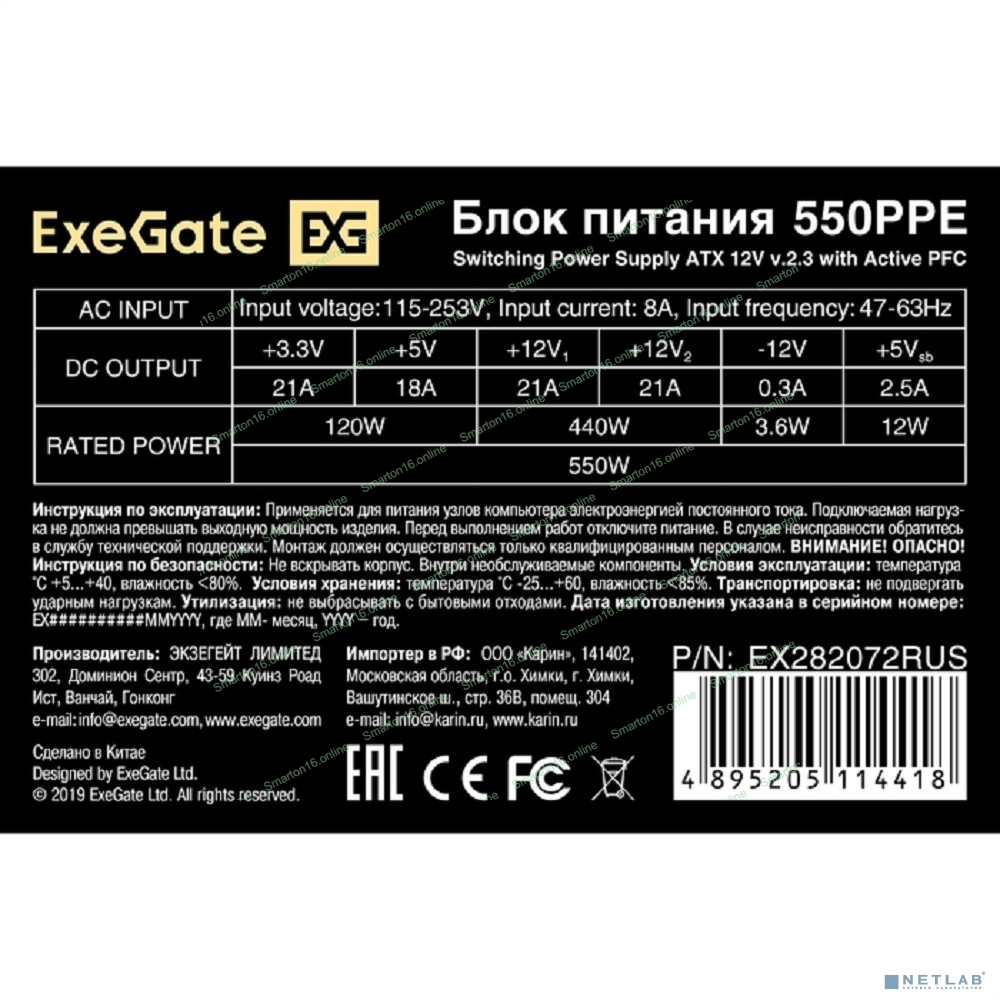Блок питания ExeGate 550PPE (EX282072RUS-PC), 550Вт, 120мм, черный